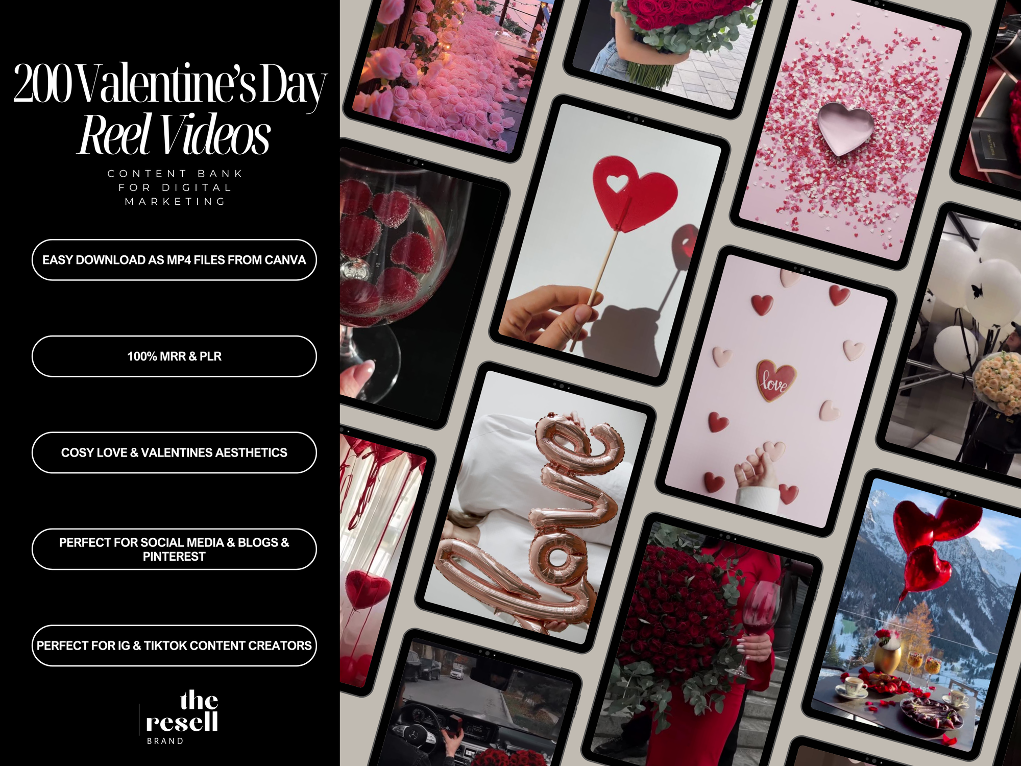 200 Valentine’s Day Reel Videos Bundle | Canva Editable MP4 | Romantic Aesthetic Video Content | MRR + PLR Commercial Use | Social Media Kit