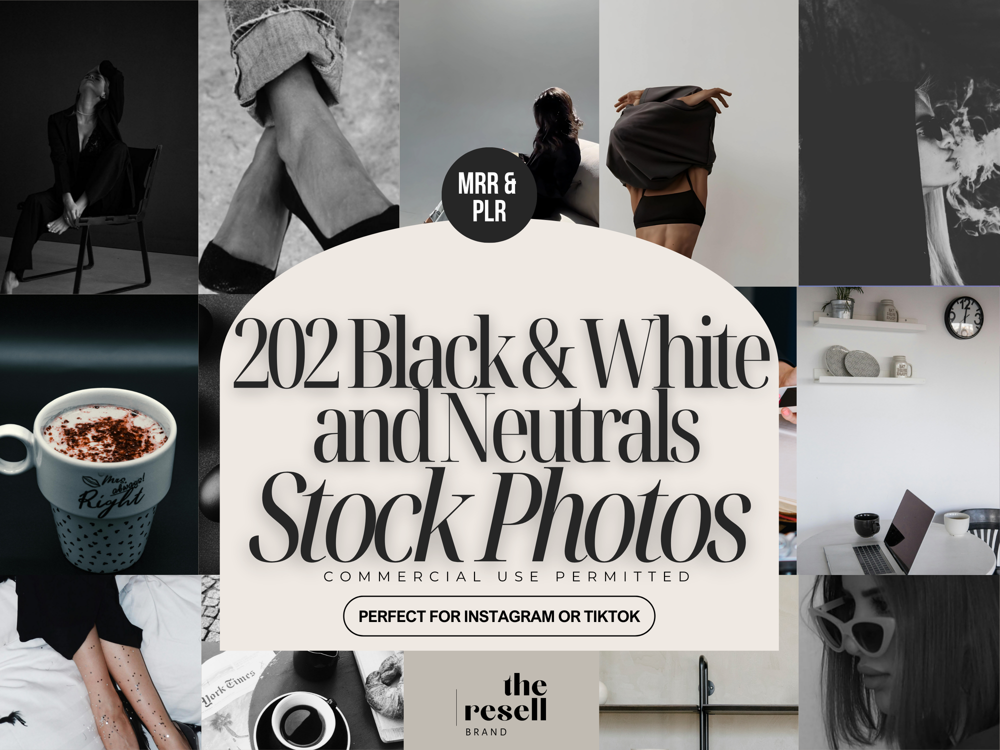 202 Black & Neutral Aesthetic Stock Photo Bundle | Fashion Editorial PNGs | Google Drive | MRR + PLR | Commercial Use | Monochrome Pack
