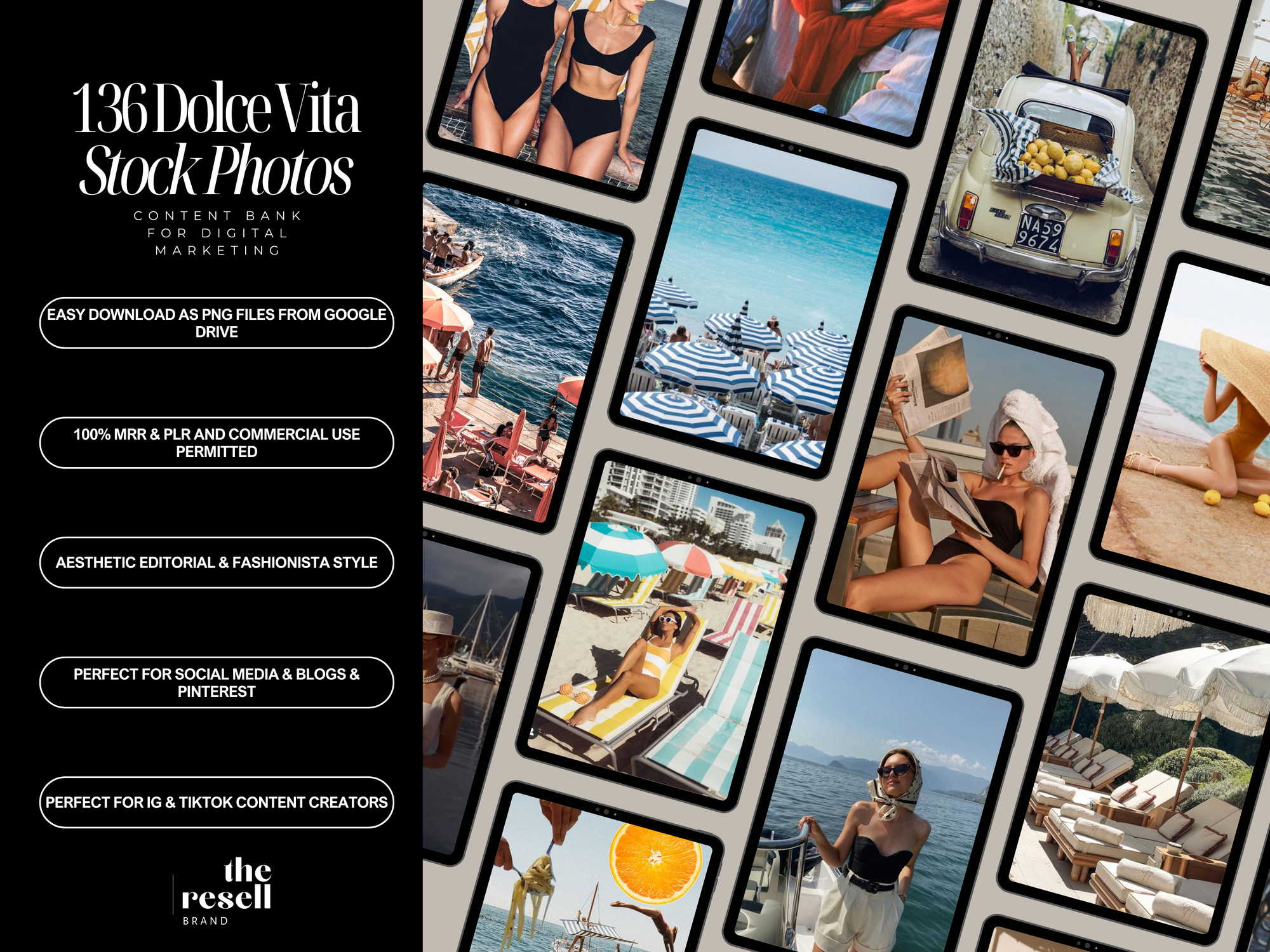 136 Dolce Vita Aesthetic Stock Photo Bundle | Italian Luxury Lifestyle PNGs | MRR + PLR | Commercial Use | Vintage Wealth Rich Luxe Pack
