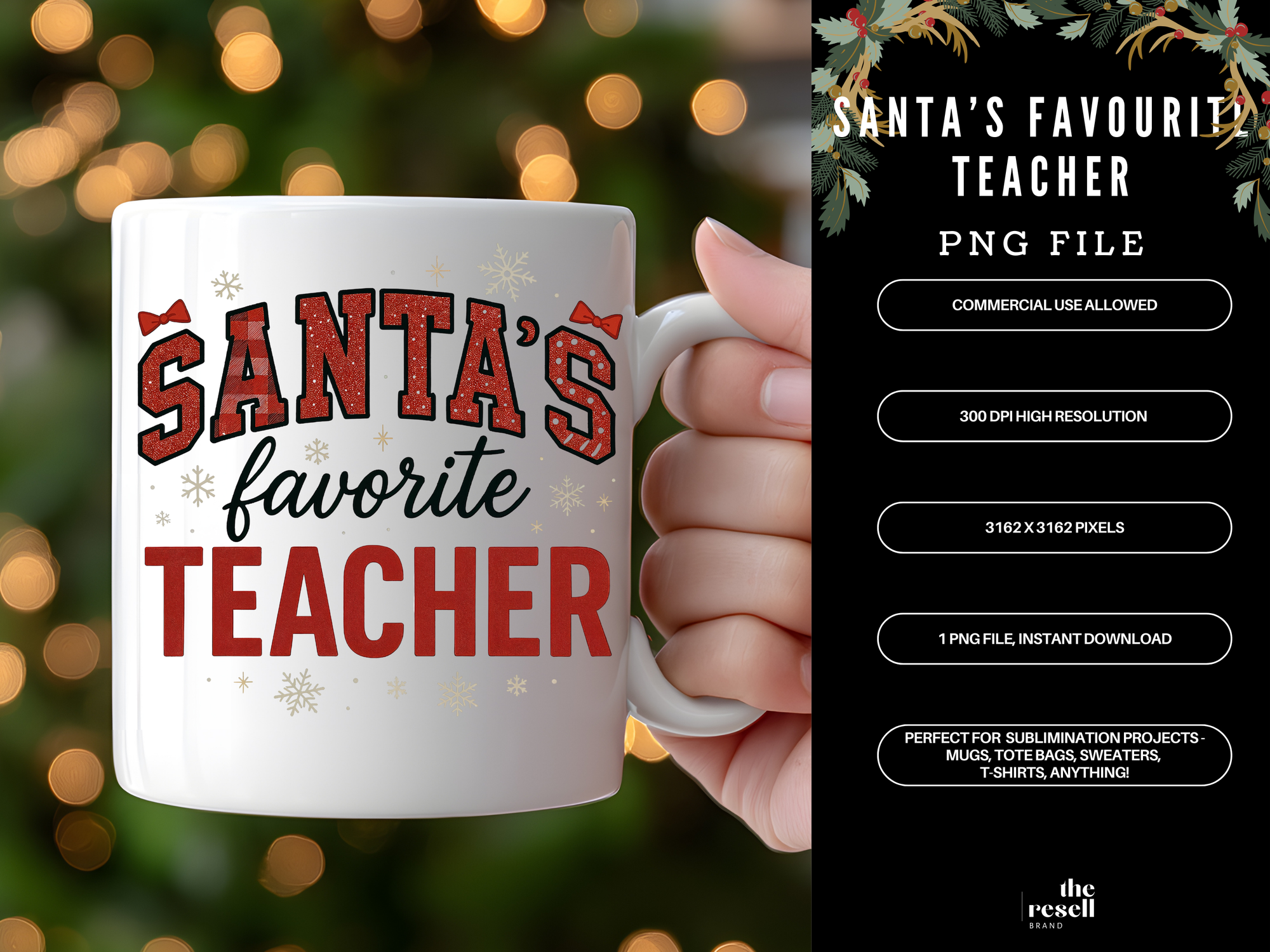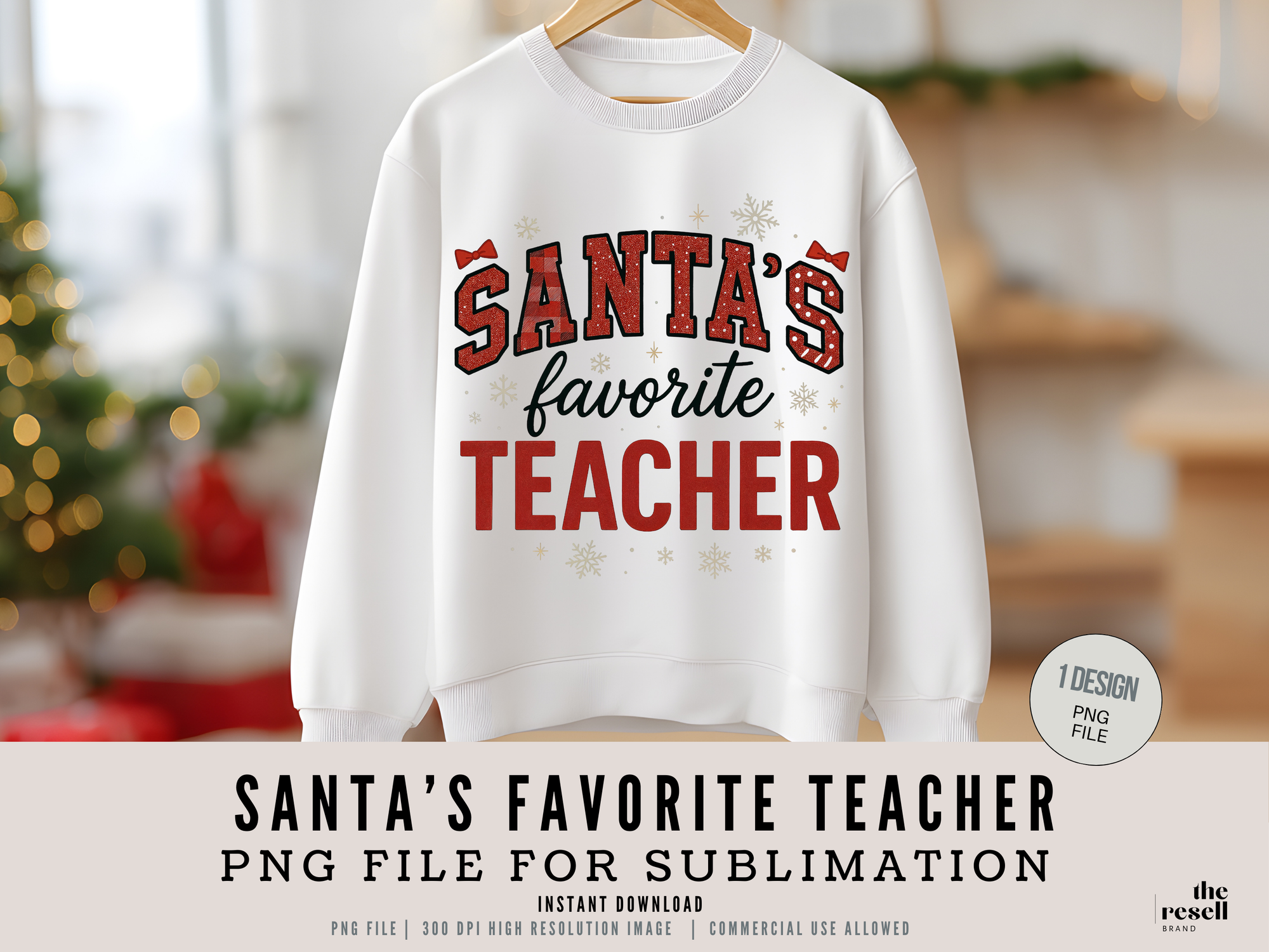 Santa’s Favourite Teacher PNG | Preppy Christmas Sublimation Design | Teacher Holiday Shirt Mug Clipart | POD & Commercial Use