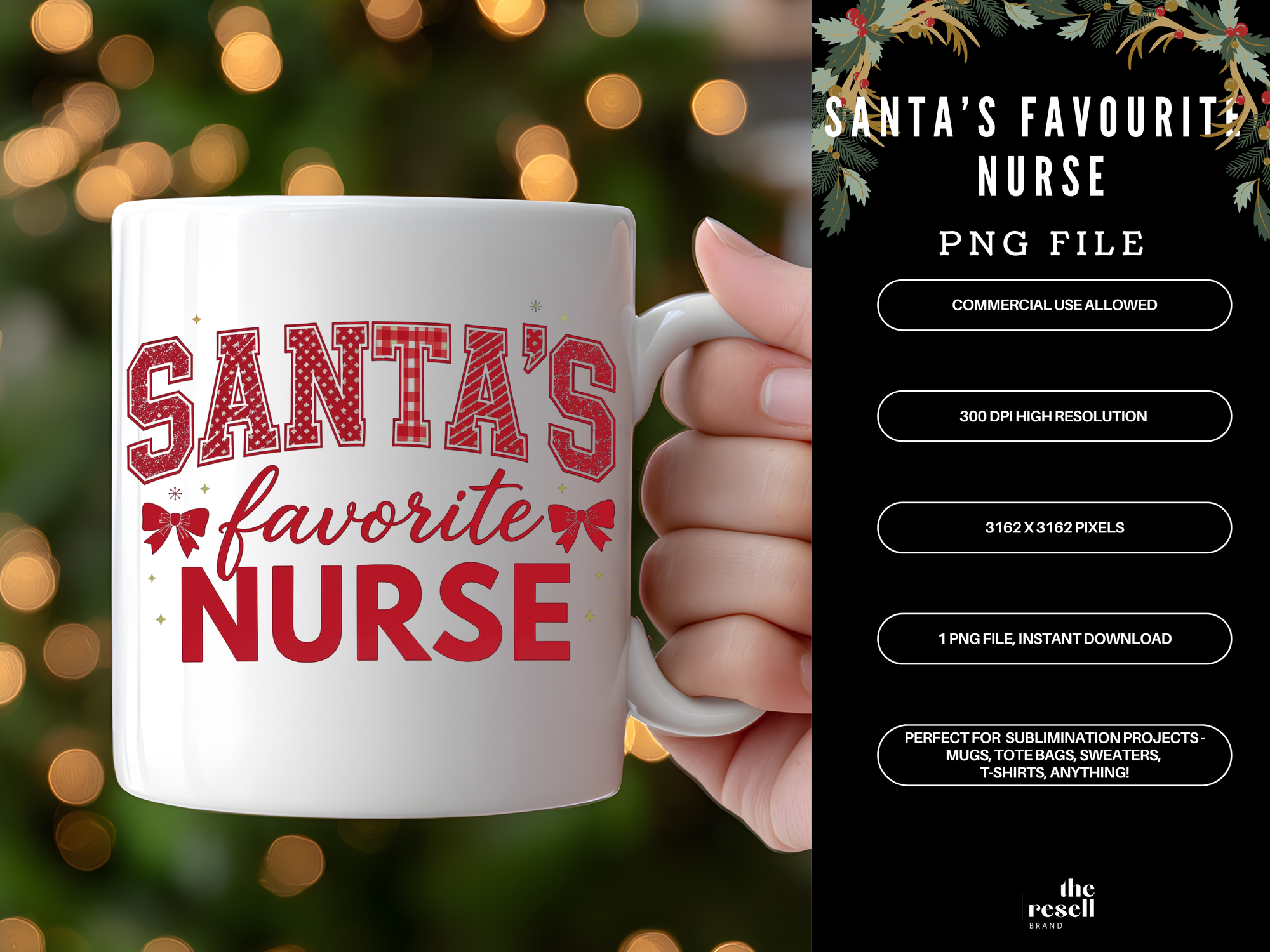 Santa’s Favourite Nurse 300 DPI PNG | Preppy Christmas Sublimation Design | Nurse Holiday Shirt Clipart | POD & Commercial Use