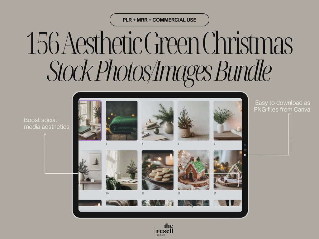 156 Aesthetic Green Christmas Stock Images Photos | Content Bank Saved in Canva | Holiday PNG Bundle | PLR & MRR Commercial Use