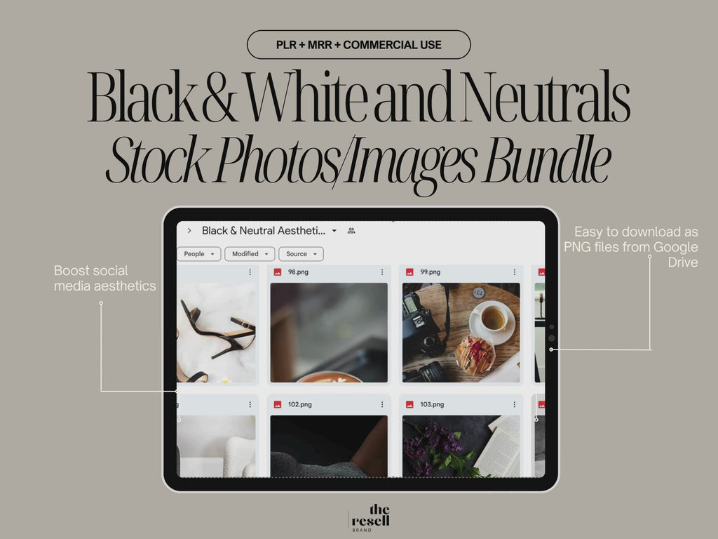 202 Black & Neutral Aesthetic Stock Photo Bundle | Fashion Editorial PNGs | Google Drive | MRR + PLR | Commercial Use | Monochrome Pack