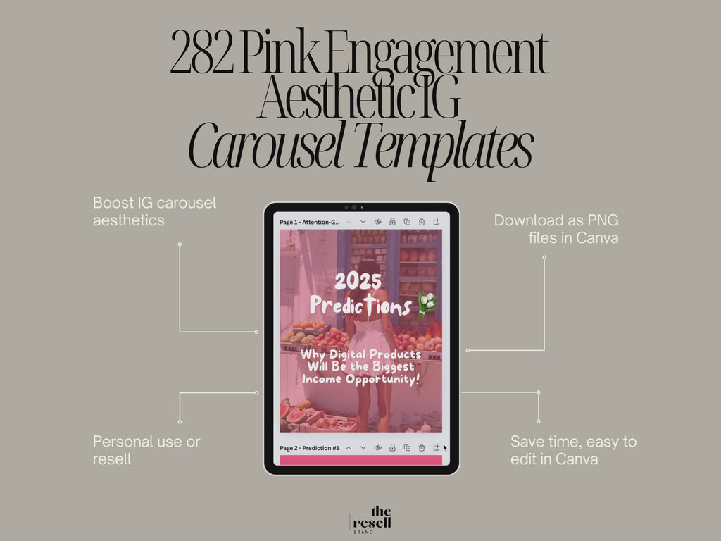 The 282 Pink Engagement Aesthetic Instagram Carousel Templates are designed to help you boost your IG interaction with warm, cozy visuals and conversation-starting prompts. Perfect for coaches, creators, lifestyle brands, and digital sellers.