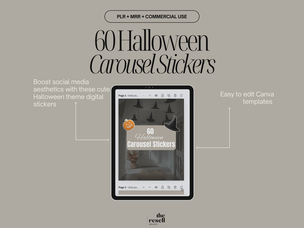 60 Halloween Carousel Digital Stickers | Canva Carousel Templates | Spooky Social Media Bundle | PLR & MRR Stickers for Commercial Use