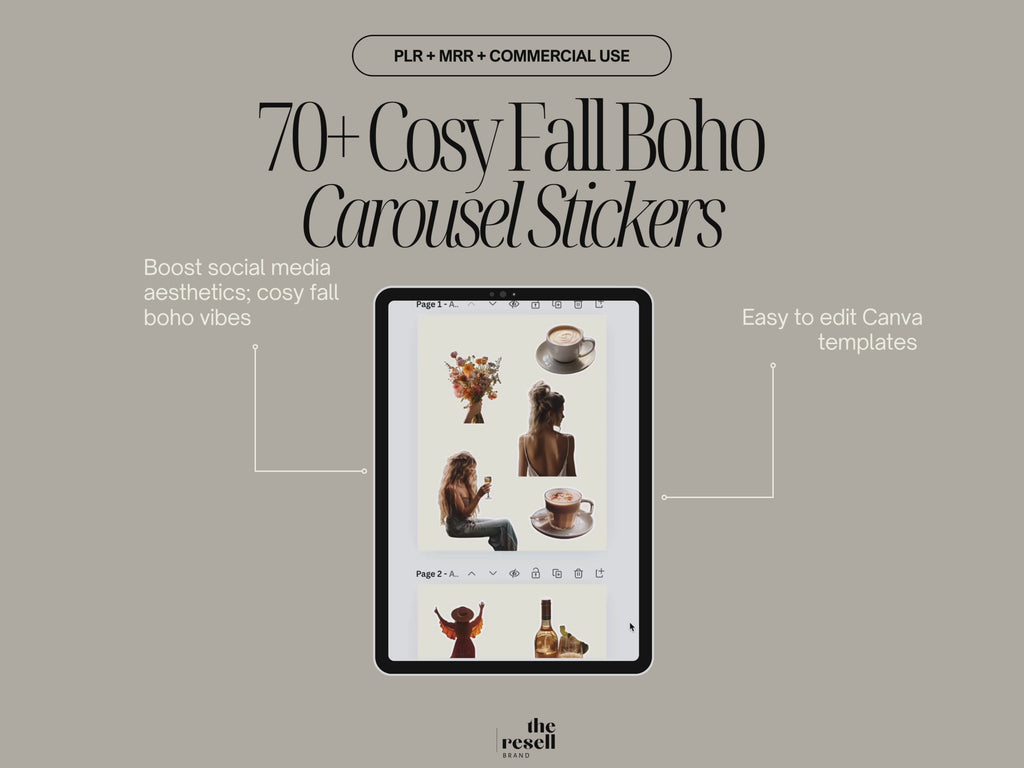 fall boho stickers, autumn digital pack, canva carousel kit, cozy fall templates, boho social media set, instagram sticker pack, tiktok carousel kit, fall aesthetic stickers, autumn canva stickers, cozy boho bundle, plr sticker pack, mrr digital stickers, social media canva