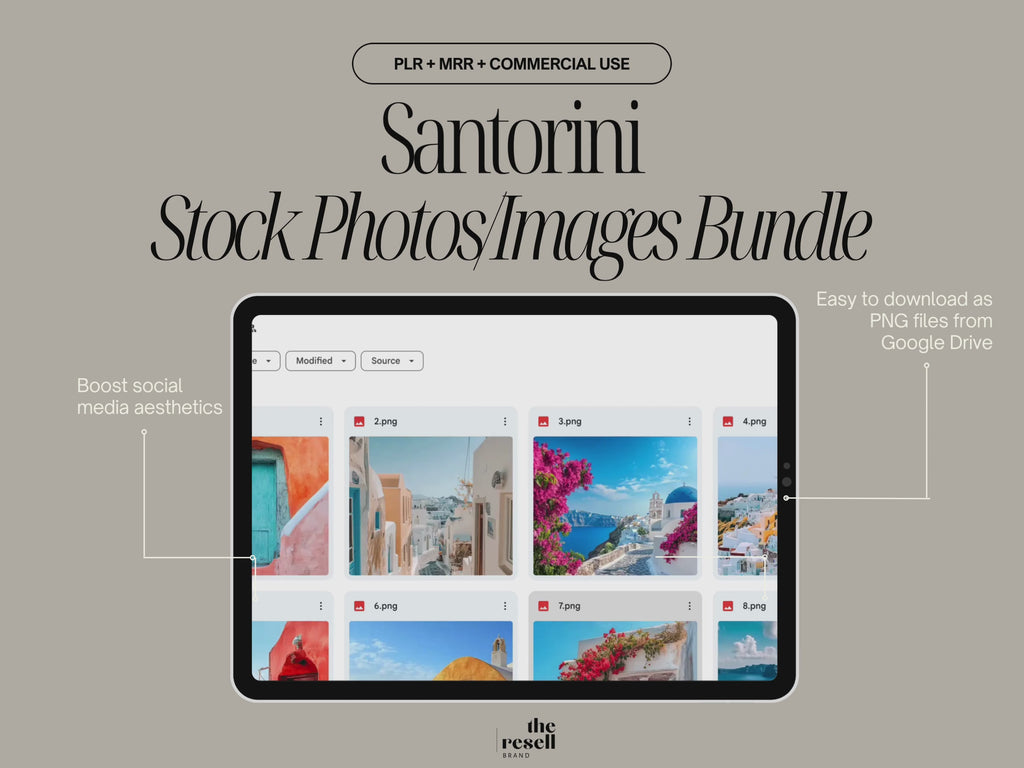 75 Santorini Aesthetic Stock Photo Bundle Content Bank | Scenic Coastal Travel PNGs | MRR + PLR | Commercial Use | Google Drive Download