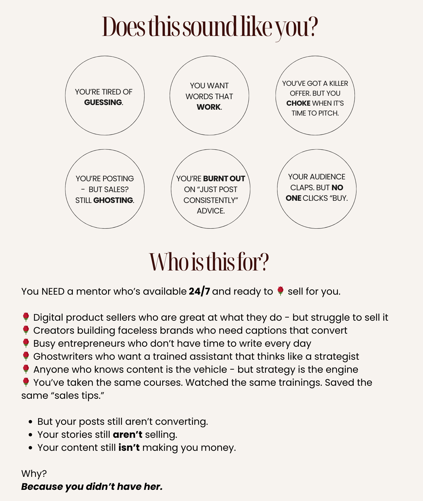 She’s not “for everyone.” She’s for the marketer who’s ready to treat content like a sales machine, not a scrapbook.