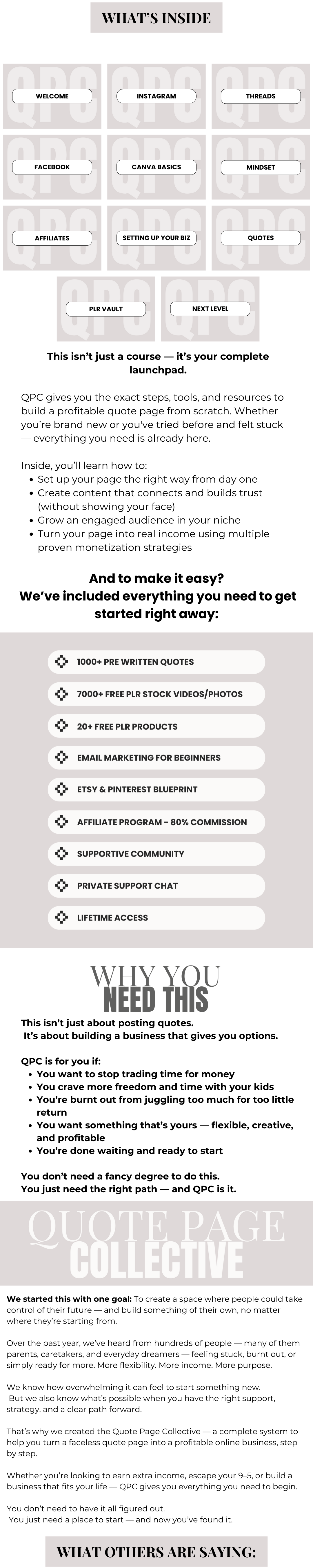 This is exactly what I teach you inside Quote Page Collective — and you don’t need followers, experience, or to show your face to start.
